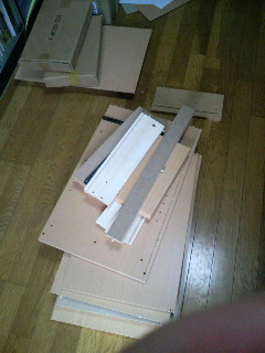 今日は昨日到着したリビングボードを組み立ててました