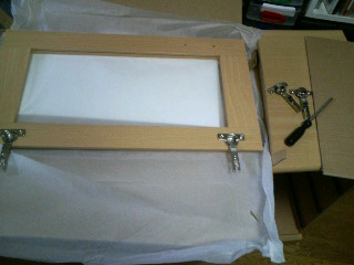 ガラス戸に蝶番をつけて→